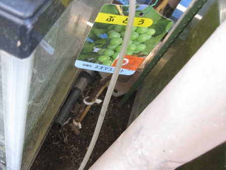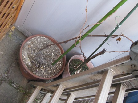 唯一の鉢植え 祖父の家のブドウの枝を挿しただけのもの