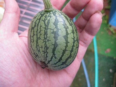 コニシキが乗っても割れないスイカ アクシアが実を付けました!!!