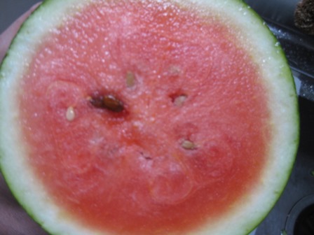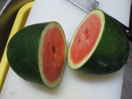 割れてしまった小玉すいか 黄色です